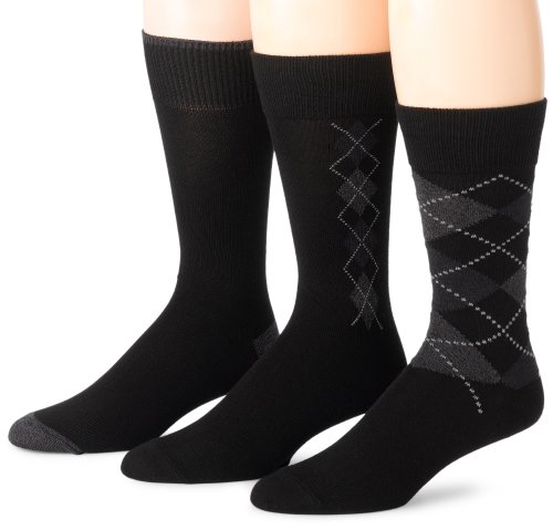 Nautica Style M11390. Mid-calf length dress socks. Super soft nylon blend. 11 inches (from heel to top). 2 argyle pattern, 1 solid. Fits men's shoe sizes 8-12. Convenient 3-pack.