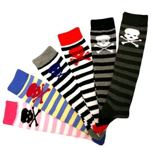 SEE MULTICOLOR STRIPED 6 PACK KNEE HIGH SOCKS WITH SKULL & CROSSBONES at Amazon.com Now