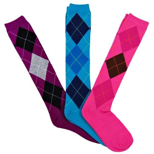 PURPLE TURQUOISE PINK ARGYLE 3 PACK LADIES KNEE HIGH SOCKS ...