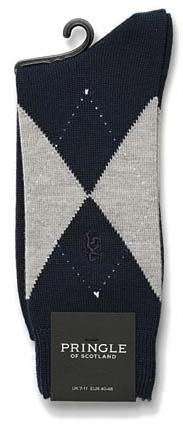 80% Cashmere Navy Argyle Pattern Socks by Pringle Luxury, fine cashmere socks from Pringle of Scotland (Gold Label). Ultra-soft cashmere ensures warmth and comfort. The intricately embroidered Pringle lion at the ankle ensures subtle style. With distinctive argyle pattern design, these socks will en ...