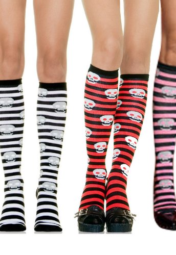 SEE Acrylic Knee High Stocking Socks with Stripes and Skulls at Amazon.com Now