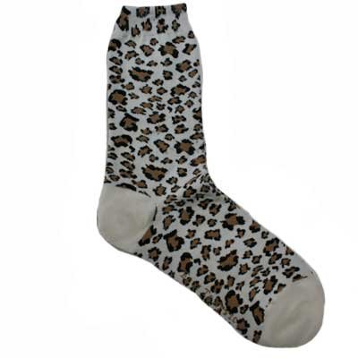 A hot leopard print on an off-white background these cotton/nylon/polyester blend socks will fit sizes 4-10.