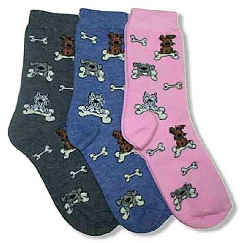 SEE PUPPY TREAT 3 PACK DOG WITH BONE LADIES SOCKS GREY BLUE PINK at Amazon.com Now