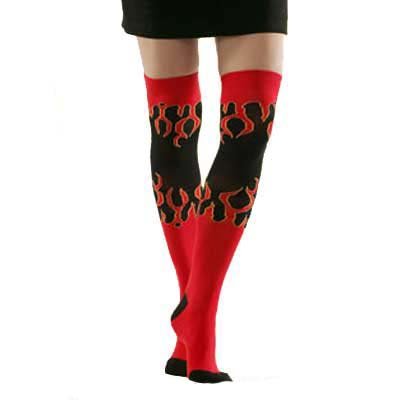 SEE AMAZING BLACK OVER THE KNEE THIGH HI SOCKS W/RED FLAMES at Amazon.com Now